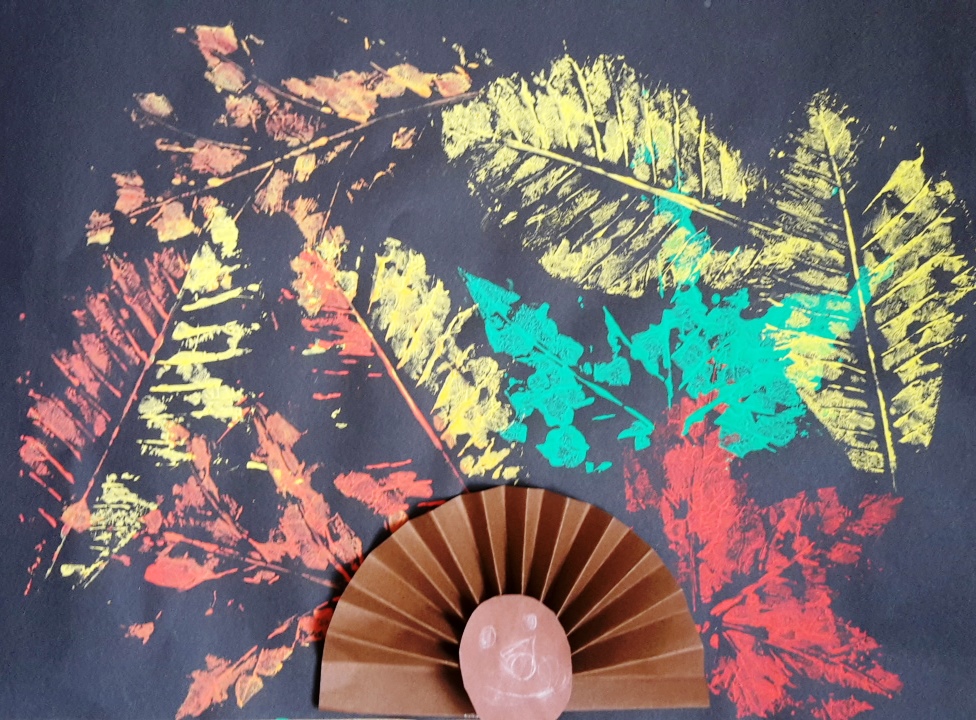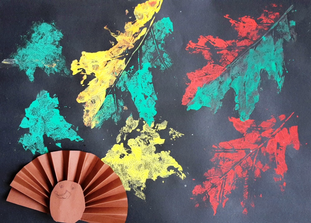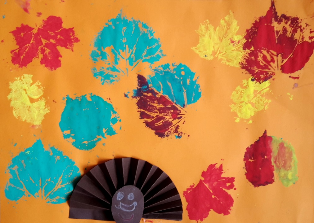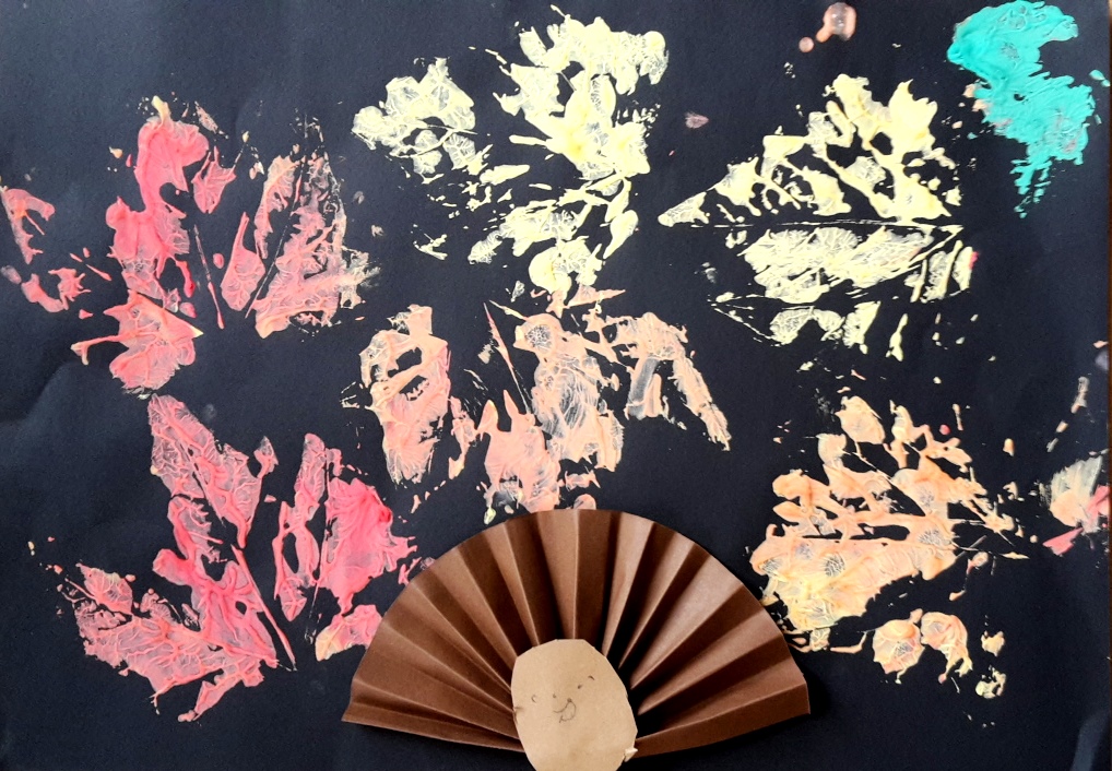 Ein tolles Thema, um sich auch künstlerisch damit zu beschäftigen. Dazu probierten sich die Kinder im Bläterdruck aus und ließen anschließend ihren eigenen kleinen Igel darin einziehen.